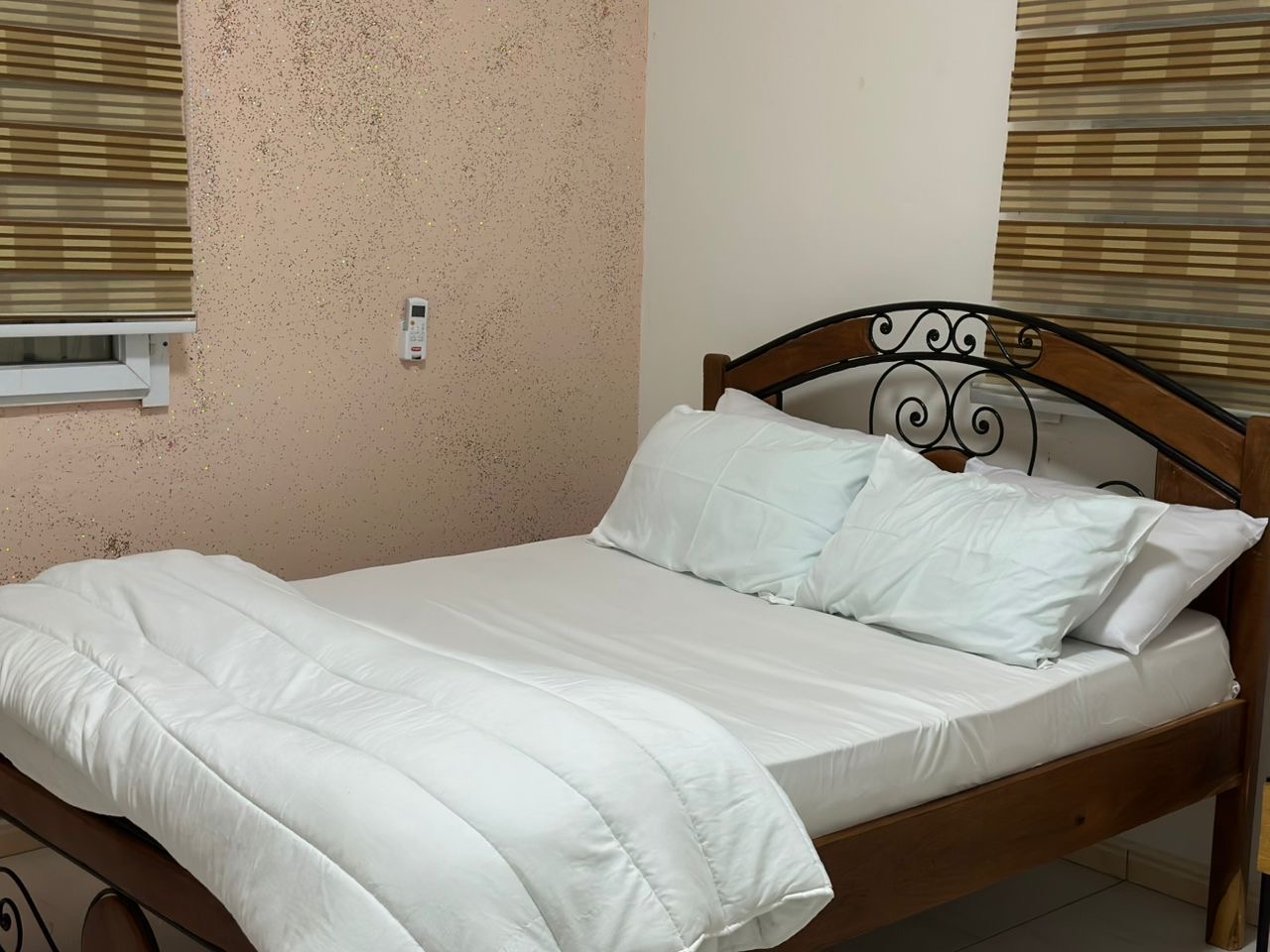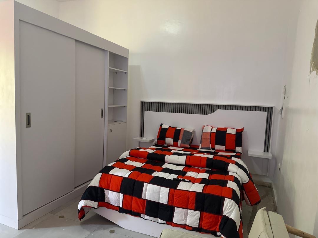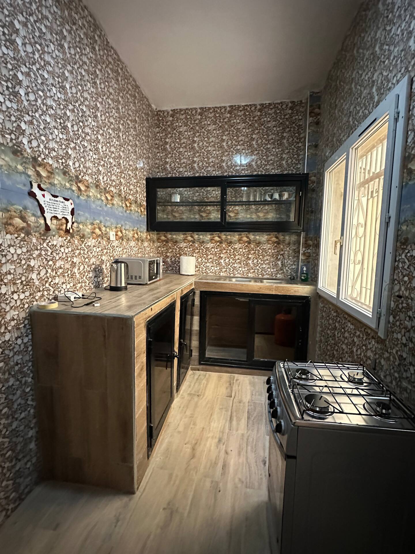 Appartement familial avec 2 chambres climatisées, salon, cuisine équipée et toilettes visiteurs. Idéal pour famille ou groupe à la recherche d’espace et de confort à 3 min du Stade Lat Dior et du Carrefour Market.